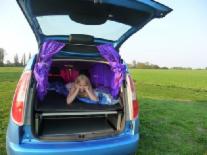 Eine stabile Liegefläche oberhalb der umgeklappten Rücksitze- durch vorschieben der Vordersitze und vor klappen der Lehnen erhält man auch bei kleineren Fahrzeugen eine Liegeflächenlänge von 1,90m und mehr,
