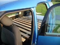 - ein stabiles Gestell aus Aluminiumprofilen im Kofferraum bildet die Basis des Bett-Systems,